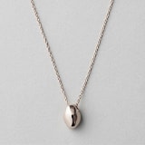 シャツ×パンツのメンズライクなスタイルには、ネックレス、ハグイヤリング、リングをシンプルに各1つずつ着けて。柔らかに波打つフォルムが首元にドラマティックな陰影を映すネックレス、現代彫刻のようなアーティなハグイヤリングは、左右の内耳に挟んでイヤーカフに。ボリューミーなリングも、女性らしい色味と曲線で柔らかな印象。