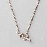 揺らぎのあるラインのネックレスに、ループにバーを通して留めるマンテルタイプのネックレス、有機的なフォルムのロングネックレスと、長さも形も異なる3本を大胆にレイヤード。ロープのようなチェーンとマンテルが新鮮なブレスレット、ニュアンスを違えた2本のリングを重ねて手元を華やかに演出。ハグイヤリングは片耳に2個づけもおすすめ。