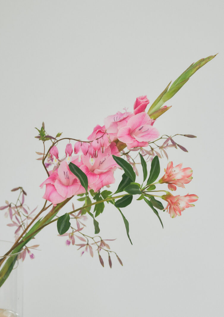 カラーも大きさも質感も自由にミックスして楽しむ、まさに「イヤーゲーム」を象徴するようなレイヤード。「洋服がメンズライクな印象だったので、シルバーカラーとゴールドカラー、ボリュームのあるものと繊細なもの、相反する要素を持つジュエリーをレイヤードして華やかに仕上げました。異素材のものを混ぜることでお互いが引き立つ。それは花もジュエリーも同じで、どれかひとつを主役にするのではなく、全部が主役になるスタイリングが好きですね」