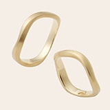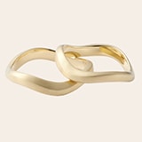 イエローゴールドとブラックルテニウム、異なる色のチャームが付いた2種類のブレスレットは、ユニセックスで着用できるよう、あえて同じデザインに。チャームは開閉式なので、時にはチェンジしたり、どちらかにまとめたりと自由にシェアが楽しめる。ダイヤモンドをあしらったブレスレットに、ふたりを優しく照らすK18リングのきらめきを添えて。