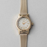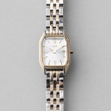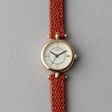 手軽に付け替えられる2種類のベルトがセット。ゴールド×シルバーのコンビカラーベルトは軽量かつ小ぶりなデザインなので、時計をジュエリー感覚で楽しみたい日にぴったり。リザードベルトに替えれば、ローマ数字が施されたシンプルな文字盤とレザーによるシックなムードがスタイルを引き締める。