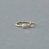 「淡いピンクのベルトに合わせて、愛らしい雰囲気を意識したスタイリングです。人差し指に着けたリングは、あこやパールとムーンストーンをあしらったもの。柔和なカラーリングは手元を見るたびにうっとりすること間違いなし。ミストピンクと相性抜群なプラチナカラーをサムリングとして着けることで、愛らしさのなかに大人な雰囲気も表現してみました」(石川)
