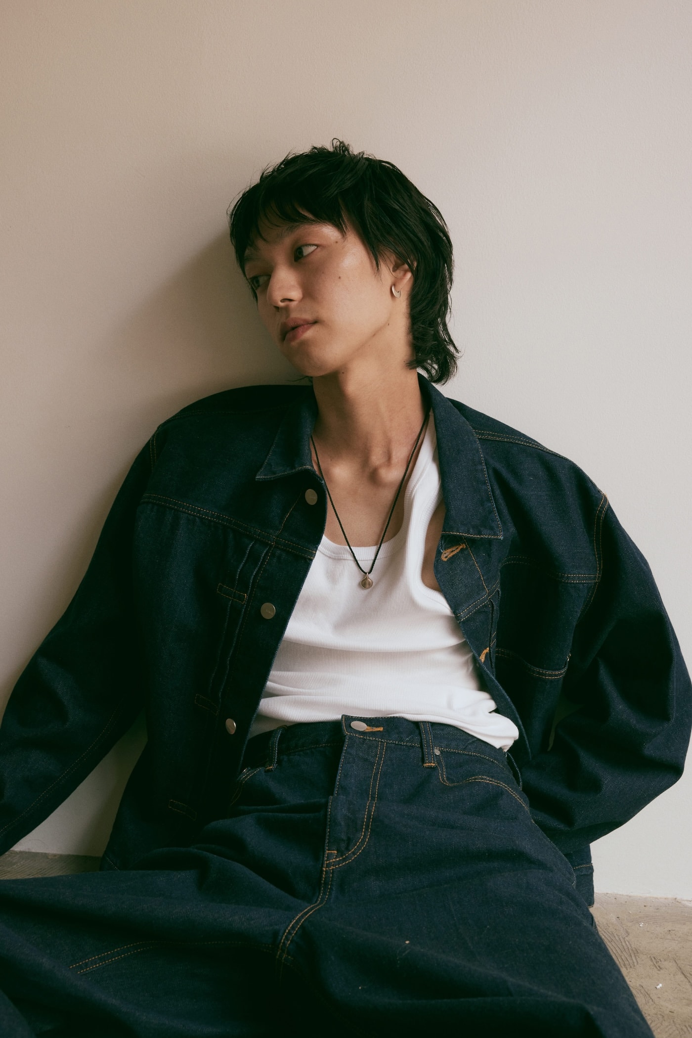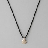 トップパーツとエンドパーツに、ロウブラウンゴールドを配置したロープネックレス。トップパーツは、ツヤのあるランダムヘアライン加工を施して芯の強さを感じる表情に。ロープには上質なシルク素材を採用して、高貴な品格へとクラスアップした。ラウンドプレート ピアスは、角度によって見え感がガラッと変わるのが魅力的。正面はシンプルに、横はボリューミーなシルエットに仕上げた二面性のあるデザインを、ジェンダー問わず堪能できる。