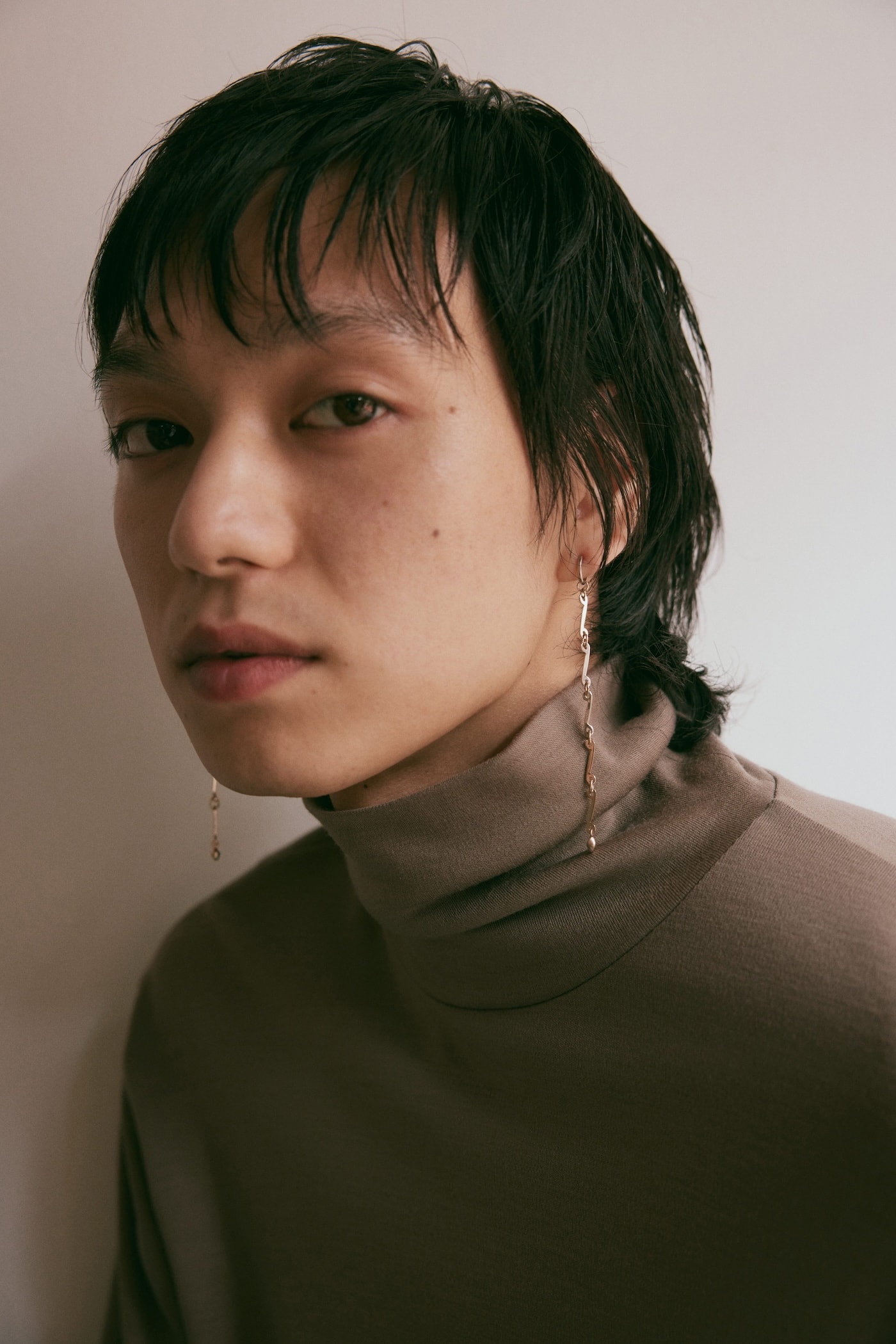 S字チェーンが抜群の存在感を発揮するパーツイヤリング。長さのあるチェーンは耳元でゆったりと揺れながら、個性的なムードを演出してくれる。チェーン部分はツヤのある表情、フープ部分はマットな表情の加工を施し、異なる煌めきを一体化した。ロウブラウンゴールドならではの落ち着いたカラーで肌馴染みが良く、男性が身に着けてもクールに決まるのがポイント。さらにチェーンを外せば、フープイヤリングに早変わり。その日の気分に合わせて、ギャップのある表情を楽しんで。