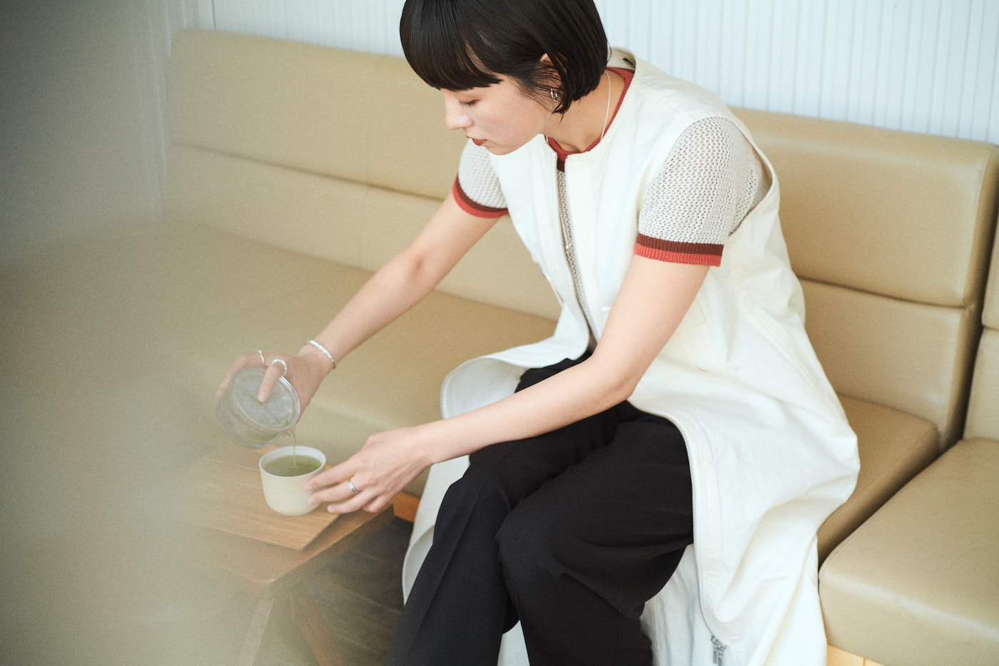 「がむしゃらに仕事をこなしてきた20代も後半に差し掛かる頃、コロナ禍にふと、なぜ自分はモデルをやっているんだろう、と原点に立ち返る時間がありました。両親と話したり地元のお茶農家さんたちのお話を聞くなかで、それぞれに抱える熱い思いをその人たちのなかにだけとどめてしまうのはもったいないなと。幸い自分は仕事柄、SNSを見てくださる方も多いので、“伝える”という役目を担うことができるのではないかという思いではじめたのが『SA THÉ SA THÉ』です。扱っているのはコーヒーを飲んでいる方にとっても飲みやすい和紅茶をはじめ、緑茶やほうじ茶など、友人にも実際に試飲をしてもらって意見をもらいながら、飲む人それぞれのライフスタイルを想像するようにブレンドを考えています。卸先も友人が世田谷で営むカフェ「LOCASA」をはじめ、ご縁のあるお店。私自身、ふだんお仕事が終わったあと、一杯のお茶を飲んで一息つく時間が、自分の気持ちや身体の状態を知るひとときになっていますね」