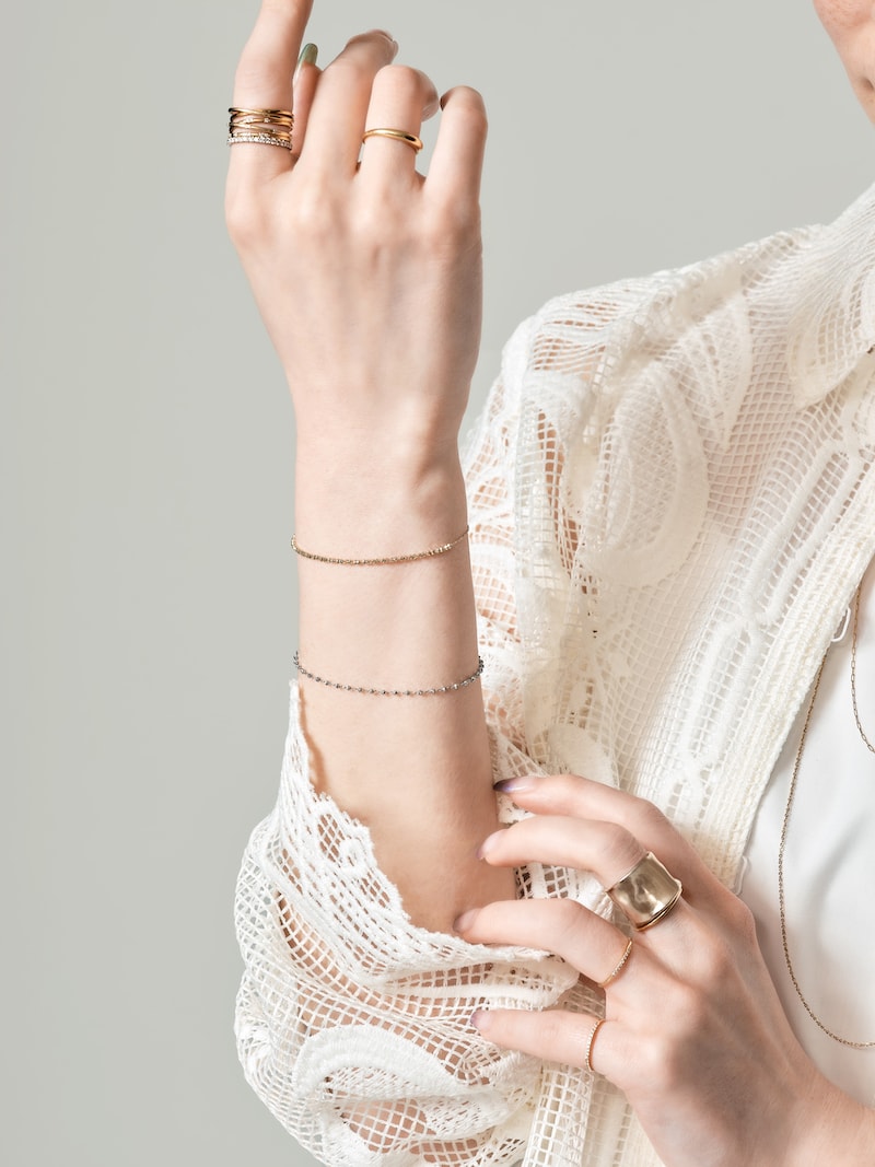 日々の気分に合わせてジュエリーを取り入れられるようになったら、気になるのが手元や首元、フェイスラインを華奢に見せてくれるジュエリーのスタイリング。細身のリングやネックレスを着けたいけれど、仕事の疲れで浮腫んでいたり、指の長さや太さが気になってしまう、首元が窮屈に見えてしまう……という方も多いはず。華奢見えするジュエリー使いのコツは?