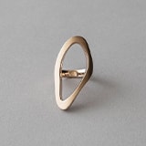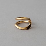 無理はしたくないけれど、少し変わったデザインにも挑戦したい。そんな人におすすめなのが写真のリング&イヤリング。金子さんも「リングはボリューム感がある一方で、ハードルの高さを感じさせず大人の遊び心を満たしてくれる頼もしい存在。抜けがあって無骨になり過ぎないから、華奢なタイプのジュエリーと合わせても相性バッチリです。イヤリングは小ぶりなサイズなので片耳にカフのように複数着けるなどのアレンジを加えても上品にまとまる優秀アイテム。しっかりとピアス見えしてくれるのでピアスホールが空いていない人でも簡単に、気分でいろんなパターンを試すことができると思います」とリコメンド。