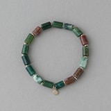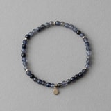 「ファンシークォーツハッピーブレスをベースに、ハンサム感を意識して重ね着けしました。異なる天然石同士も、色味や雰囲気が近いものを選ぶと統一感が生まれて着けやすくなります。また、シルバーのバングルをレイヤードすることでモダンな空気感が演出できるので、天然石をスマートに取り入れたい方へぜひおすすめしたいスタイリングです」(Yokoyama)