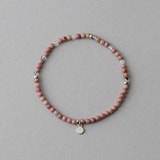 「天然石の特徴のひとつに色彩の豊かさがあります。ロードナイトとクォーツを組み合わせたこのブレスレットは、ピンクを基調にしたフェミニンなグラデーションが魅力的。そのまま着けてもハッピーな気分が味わえますが、少し遊びを効かせたかったのでシルバーのチェーンを重ねて着けて、甘さとクールさを掛け合わせました」(Yokoyama)