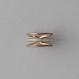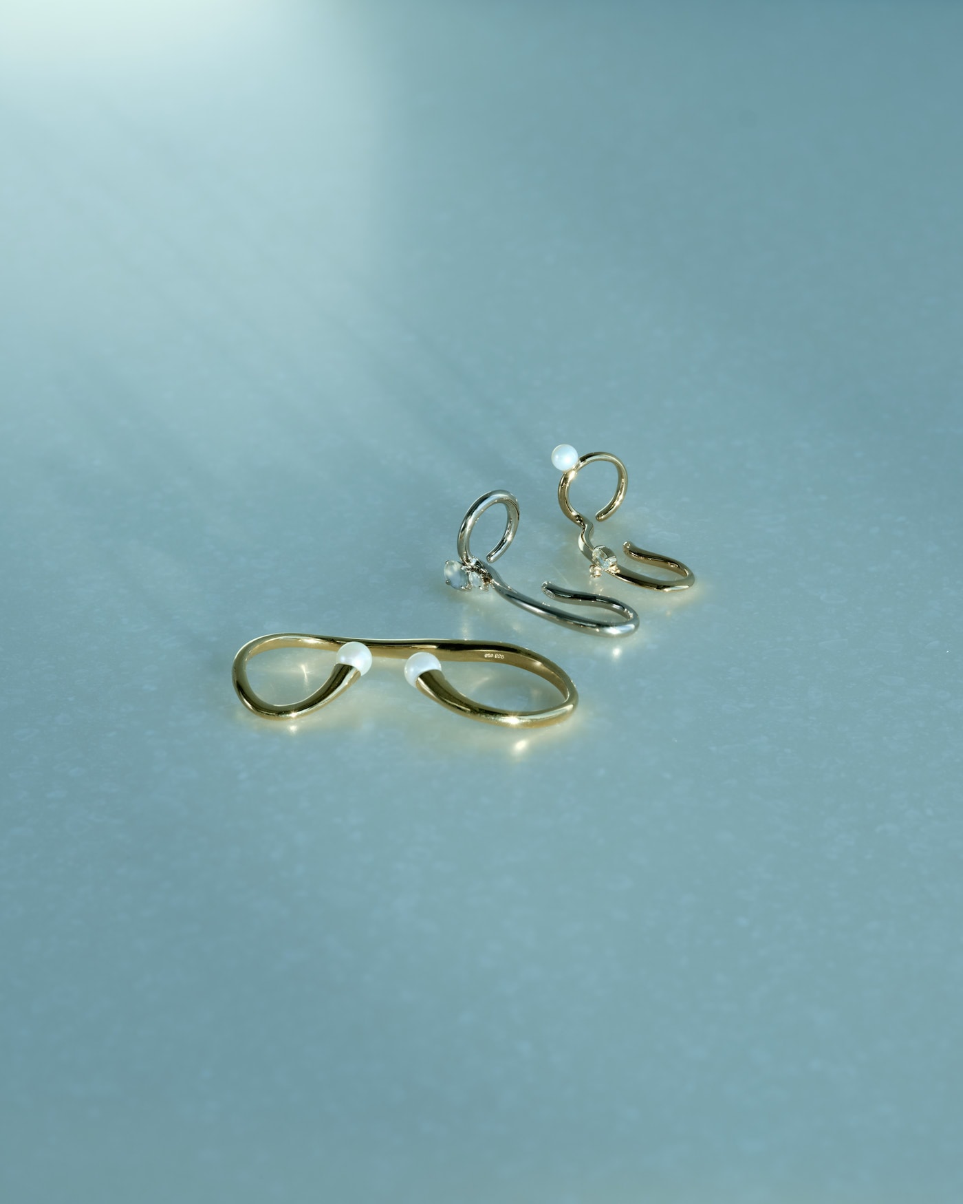 「スタイリッシュさやモードな雰囲気が好きな方におすすめしたいイエローゴールドの“Vivid”。あらゆるシーンでお使いいただけるマルチフルなデザインとなっています。ミストピンクゴールドの“Wavy”はパール使いで雰囲気が柔らかく、フェミニンな雰囲気が好きな方にまさにストライクなデザインだと思います。“ete bijoux Limited”はシンプルなのでお手持ちのジュエリーと合わせやすく、大人の凛としたムードとの相性が抜群。2連風のリングにはエポキシ樹脂をあしらい、シンプルながらも個性を感じるデザインとなっています。通常、エポキシ樹脂を使用する際は地金の色と差をつけたヴィヴィッドなカラーにすることが多いのですが、今回は珍しく地金に馴染むニュアンスカラーで仕上げています。このこだわりは日常使いへの配慮と大人の遊び心から生まれています」