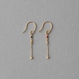 「デザインイメージは“光の交信”。街の自然光やネオンにはじまり、目に見えないネットワークや電波まで、あらゆる光が行き交う風景を表現しました。首元にカラーストーンが点在するかたちになるのですが、中心をあえてずらしてみるなどフィーリングでお楽しみいただけると思います。繊細かつ色彩豊かな魅力は、デコルテが綺麗に出るような装いに合わせることでより真価を発揮します。長さもアレンジできるのでぜひ重ね着けをお試しください。また、パズルリング“Vivid”のカラーストーンと連動しているので合わせてスタイリングいただくのもおすすめです。ピアスは左右で全く異なるカラーストーンを使ったアシンメトリーなデザイン。eteの定番コレクションになかった斬新なアイディアを散りばめました」